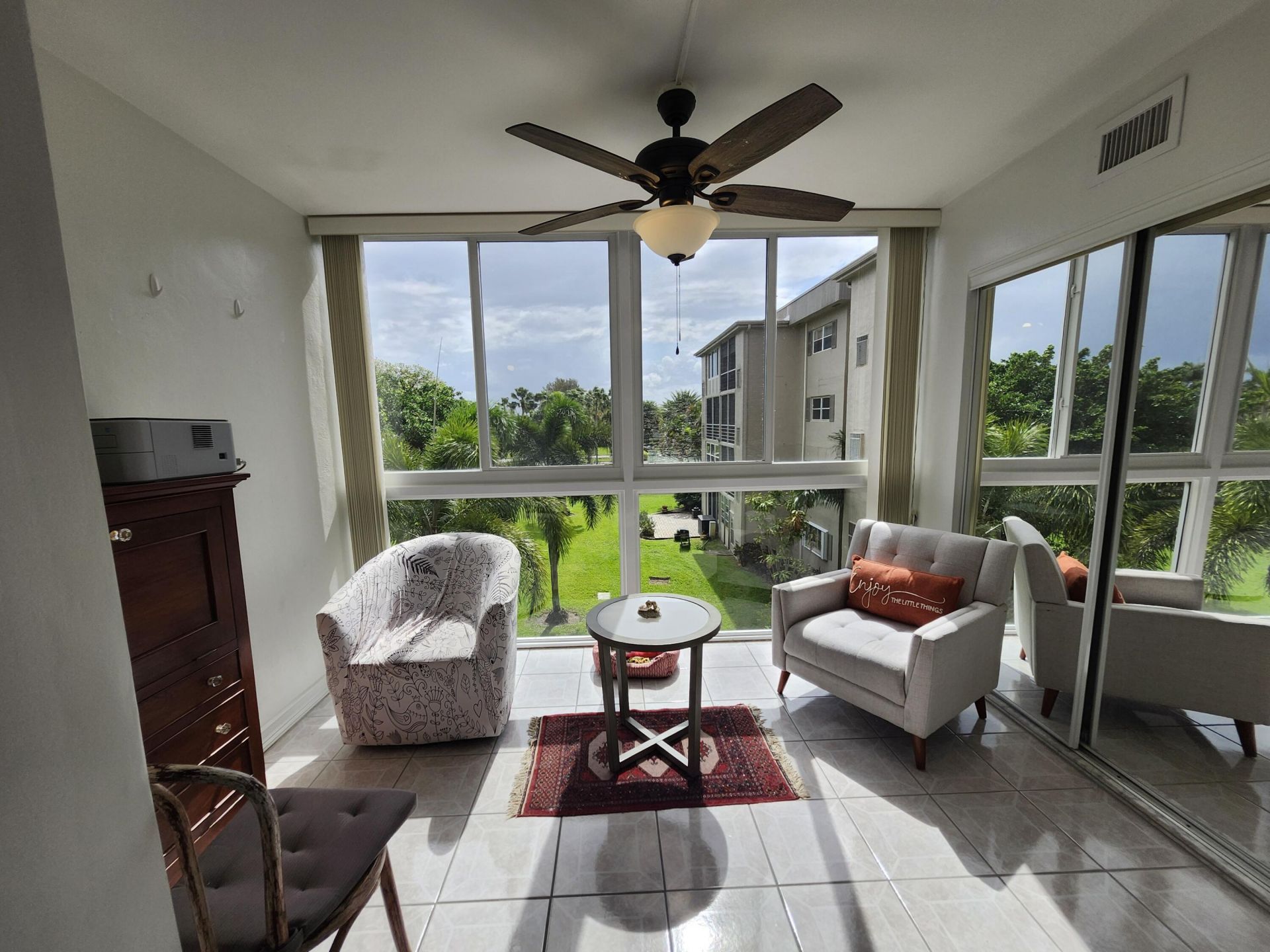 Welcome to a state-of-the-art, designer 1BR/1.5BA corner condo 3rd floor on the T just steps from elevator This move-in-ready gem is freshly painted &beautifully furnished stylish, modern d?cor that feels straight out of a model home! Updated kitchen features unique, designed cooking space, complete with a wine refrig, air fryer, microwave, plus the added convenience of a washer/dryer in place of a dishwasher ceramic floors throughout, updated kitchen &ceiling lighting, plantation shutters Spac...Welcome to a state-of-the-art, designer 1BR/1.5BA corner condo 3rd floor on the T just steps from elevator This move-in-ready gem is freshly painted &beautifully furnished stylish, modern d?cor that feels straight out of a model home! Updated kitchen features unique, designed cooking space, complete with a wine refrig, air fryer, microwave, plus the added convenience of a washer/dryer in place of a dishwasher ceramic floors throughout, updated kitchen &ceiling lighting, plantation shutters Spacious queen-sized bedroom offers comfort &style,bathrooms have been refreshed w/ new toilets & vanities.Enjoy enclosed Florida room with floor-to-ceiling impact windows,showcasing magnificent garden view . GE electric panel, 3-yr-old water heater,Ideal for snowbirds or your FL getaway! see supp: cont..Ample storage, assigned & guest parking, bldg 7 passed its milestone inspection & maintains reserves. VRG offers two beautiful clubhouses & a wide array of amenities & activities perfect for an active lifestyle Welcome to your Florida lifestyle at Village Royale on the Green -- a vibrant, friendly 55+ community filled with amenities and activities. Enjoy 2 pools and hot tubs, 2 clubhouses, fitness gym, card ,art, computer rooms, Library, tennis, pickleball, table tennis, billiards, shuffleboard, bocce, and a large auditorium featuring movies, shows, dances, exercise classes bingo. The beautiful lobby hosts social gatherings, wine & cheese nights, and karaoke. Also close to beaches, restaurants, entertainment shopping, transportation,etc Experience the fun Florida lifestyle in this model-perfect condo you won't want to miss.!